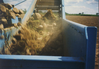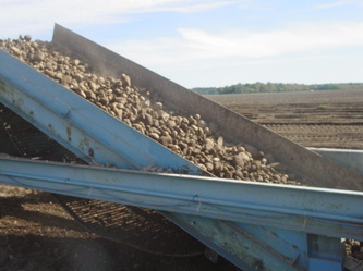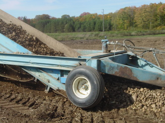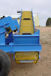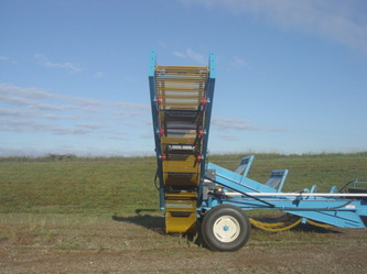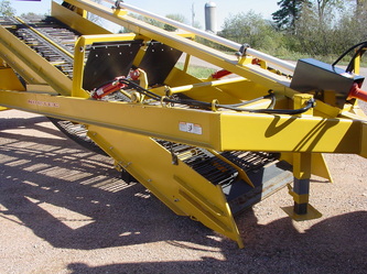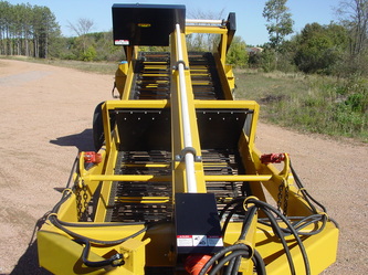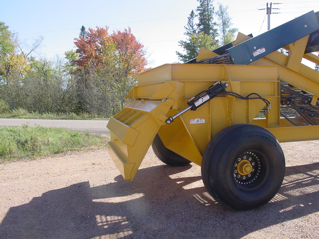 Common question Box or Boom? Both concepts have their place and purpose. If you're looking for production the boom is 5 times faster than a box. BUT... You need dump trucks to haul the material off the field. If your a single person operation then the box is the way to go. One other huge factor to take into consideration is the fact the box is a one stage cleaning system the boom is a two stage. Both the box and boom offer the digger bed as the first stage. With the boom the first stage (digger) dumps into the second stage (boom) for twice the cleaning. Because of the second stage cleaning system you can increase your tractor speed. Let me further explain, as material is flowing up the digger the bottom one third is the collection area. Material is being collected to start the cleaning process. As the material flows up the elevator material such as dirt is being processed out. Towards the top 1/4 you should see clean material. On a box, if you see the top 1/4 you're seeing non-cleaned material that's an indication you need to slow down. On the boom model there is no need to slow down because of the second cleaning stage. Rule of thumb is the boom model is about 30% to 40% faster in ground speed.