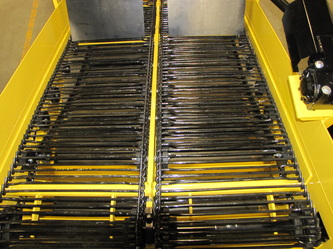 hooked together to form a continuous conveyor.