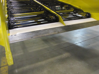 Digger front is engineered and designed to take punishment. Several improvements have been made in this area. First off the clean design. Second the all new replaceable side tooth. The side tooth is the first point of contact. Also aids in digger stabilization. Notice we moved the digger blade forward. Much more efficient material flow onto digger chain. Cuts down on material spillage by 50%. This is one of the areas that has allowed us to be more efficient and increase field speed. Also the digger stabilization tooth is now replaceable.