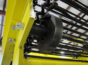 The all new Auto Boom has some serious advancements in design. First: the hydraulic motor has been relocated to the bottom. On past models it was located at the top in a high damage area. Second: more positive drive and more power. The non current series had hook chain. There are several disadvantages to hook chain in this area. First: wear, the belted chain will out live hook chain many times over in this application. Second: when using belted chain there is little to no maintenance in this application. Third: Belted chain can run at a much higher rate of speed than the lower cost chain version. Higher speed allows for more work being done. The Auto Boom folds inwards for easy transport and/or storage.